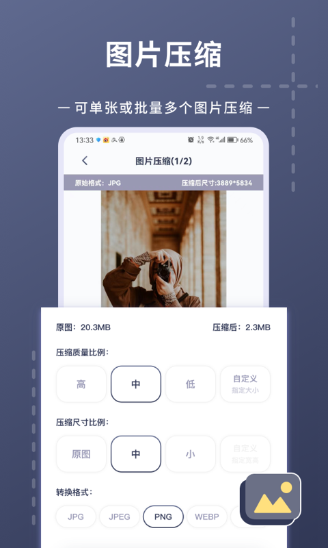 照片压缩器可以将5M照片压缩为800KB,同时非常高清。