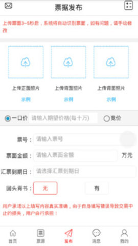 2、支持用户在线发布票据信息,以便可以及时得到优质的服务;