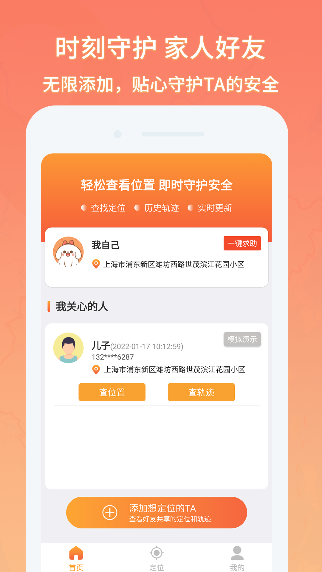 3、安心守护:支持家人、孩子、伴侣、好友等安全守护;