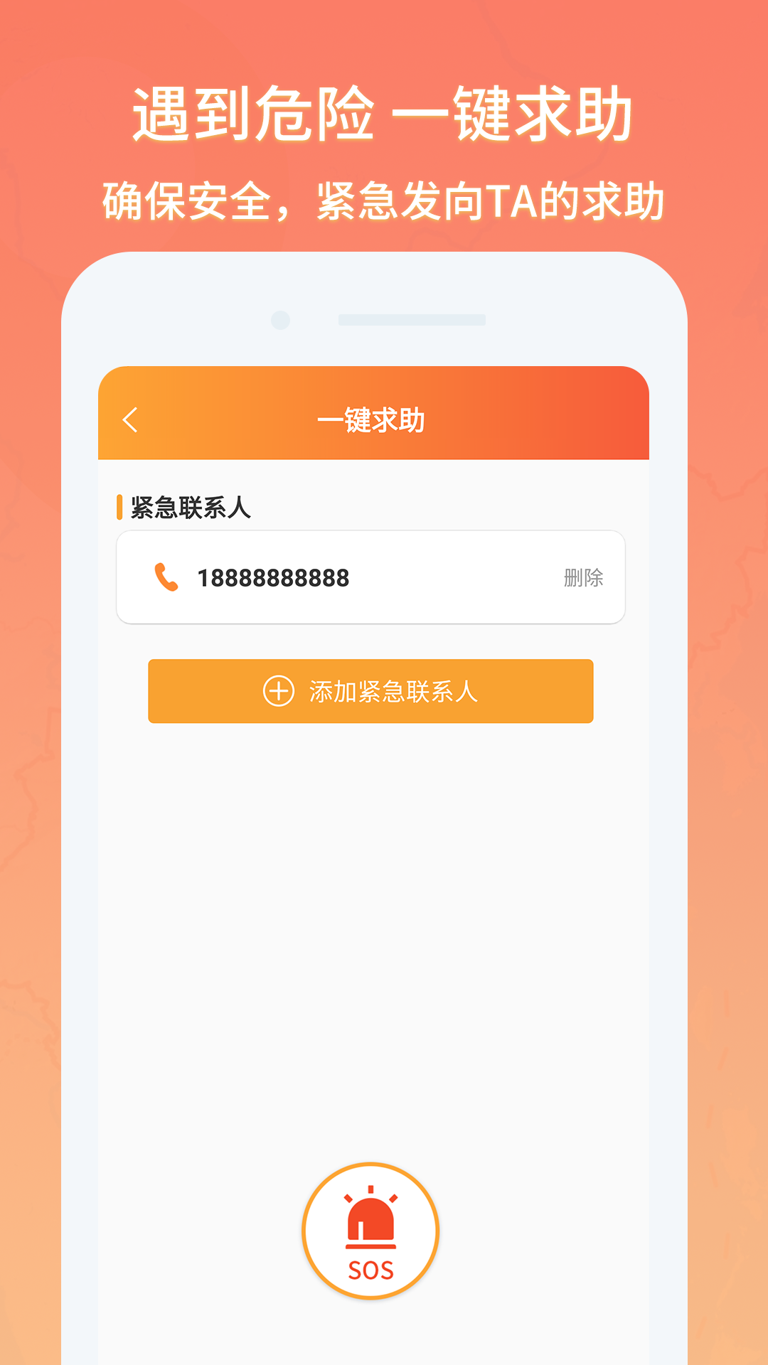2、若遇到危险情况能够一键向紧急联系人发起求助短信,贴心守护亲友的安全;