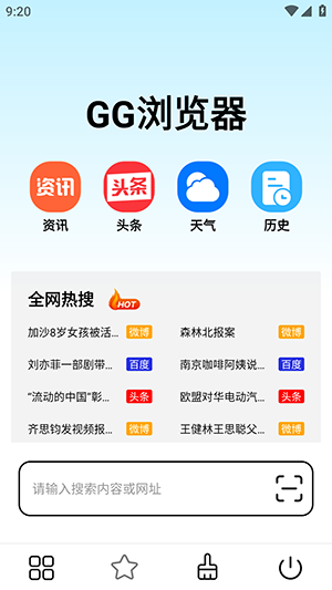 GG浏览器APP一款全新上线的手机浏览器APP,软件具有十分简洁的UI界面,还拥有独特的全新启动页面,拥有丰富的个性化小部件,全面保障用户在浏览网页时的数据安全,为用户提供干净、快速、安全的浏览器体验!