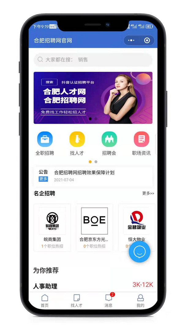 专为合肥人打造的在线求职中心。汇聚一大批招聘公司。为求职者打造专业的求职专栏,提供丰富多彩的求职活动,精准对接公司与人才,让您找工作更放心