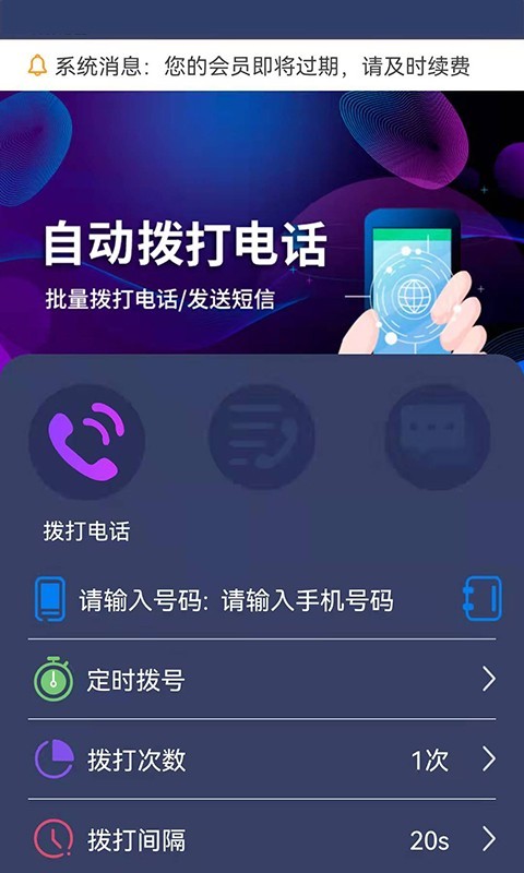 隐藏电话助手app是一款打电话不显示号码的软件。该软件私密性是非常高的,支持一键批量拨打电话发送短信、还可以设置拨打次数、拨打间隔等,以及支持文档导入、通讯录导入、复制粘贴导入号码,使用起来是非常方便的,省时省力,提高办公效率,有需要的小伙伴们快来下载试试吧!