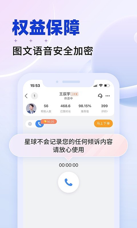 3、24小时陪伴,任何时间,你的问题和倾诉都会有人回应,在星球,没有人会真正的孤单,总会有人温暖着你。