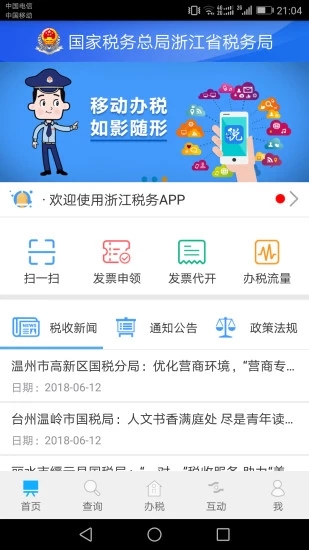 首页提供最新的通知公告,税收新闻,政策法规等内容;