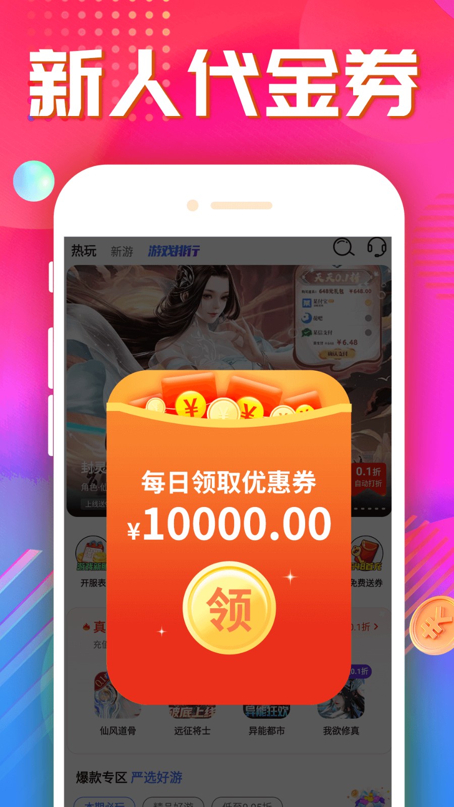 3、【游戏福利】送首充、满级VIP、648红包、优惠券、送月卡、低至0.1折、无限元宝、GM特权等;