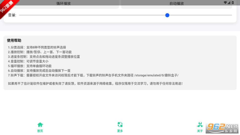 7.铃声下载:需要授权开启文件夹访问权限后才能下载,下载铃声的铃声在手机文件夹路径/storage/emulated/0/趣铃盒子
