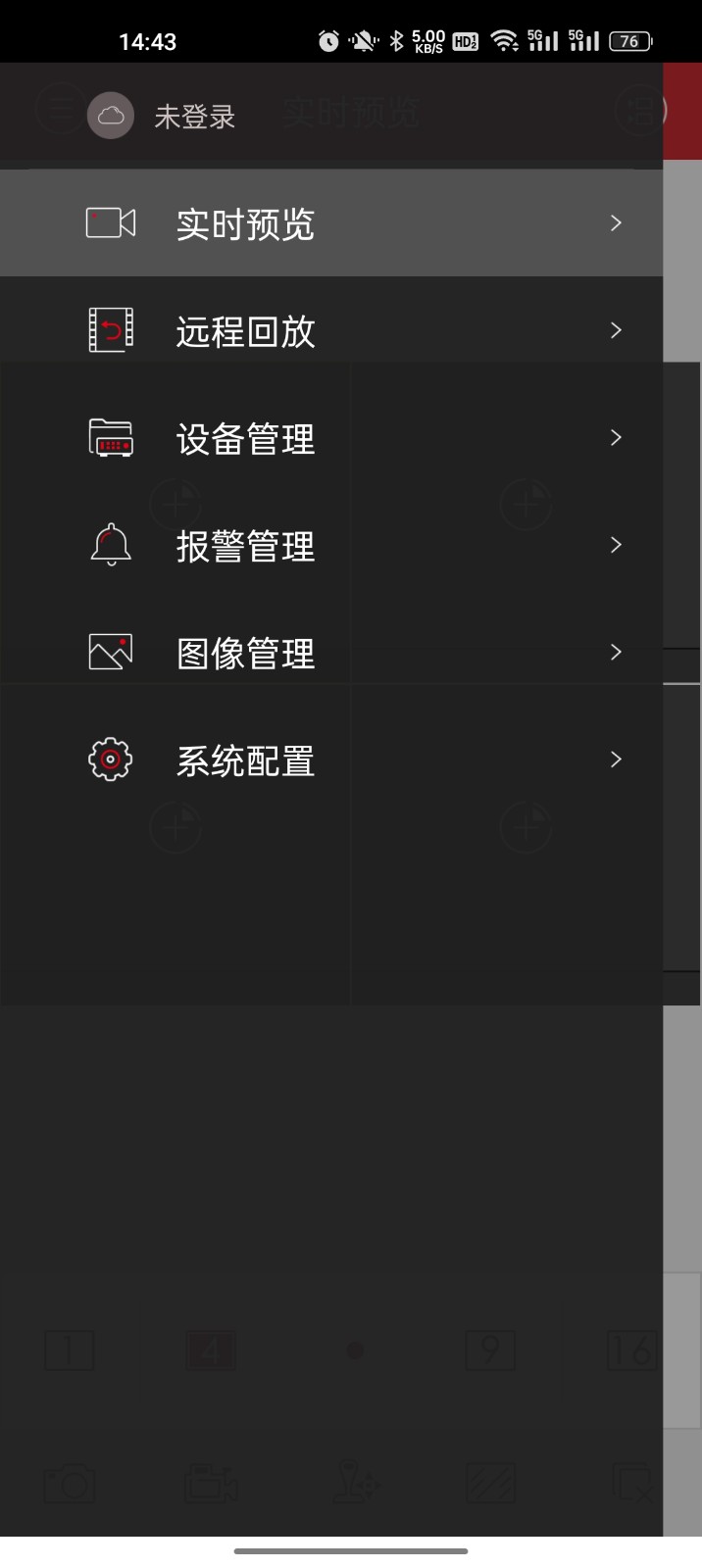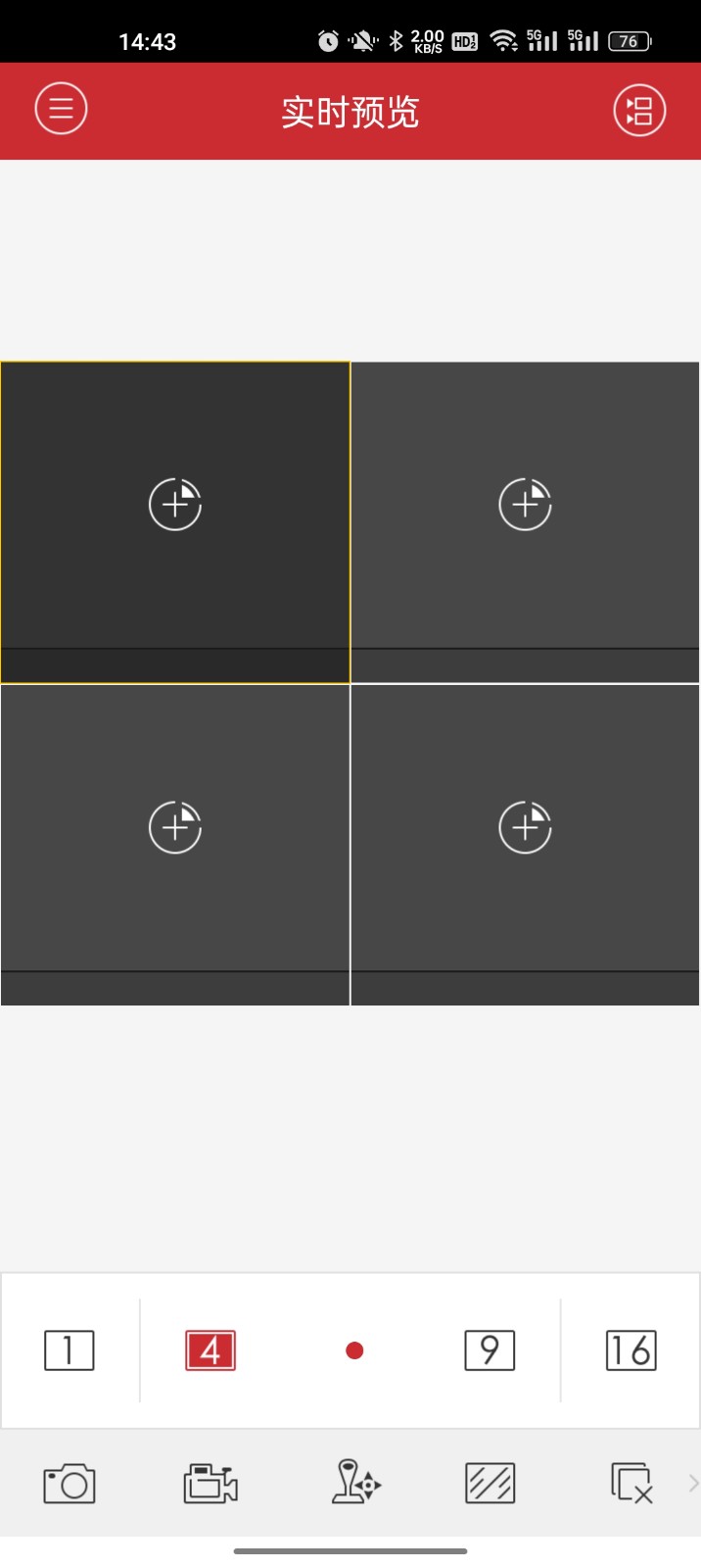 切换页面:当预览通道数大于画面分割数时预览画面多屏显示,向左/右滑动屏幕可切换下/上一屏。