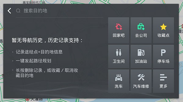 高德地图车镜版可以添加常去的地点到收藏夹,或者提前将要去的地方存进收藏夹,导航时可以直接调出地点进行导航,更加快捷。(车镜连接手机热点后手机上的高德地图收藏的地点可以同步到车镜上)