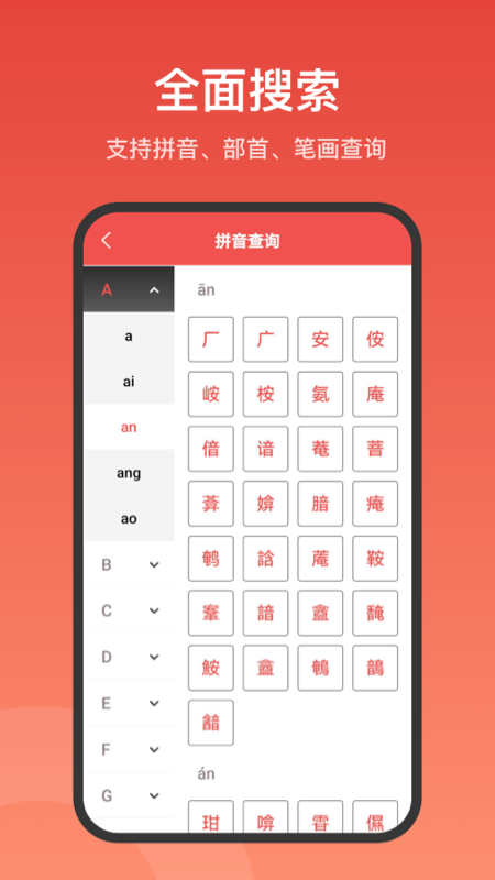 2、支持单字、词语、汉语拼音、部首、笔画等多种检索方式