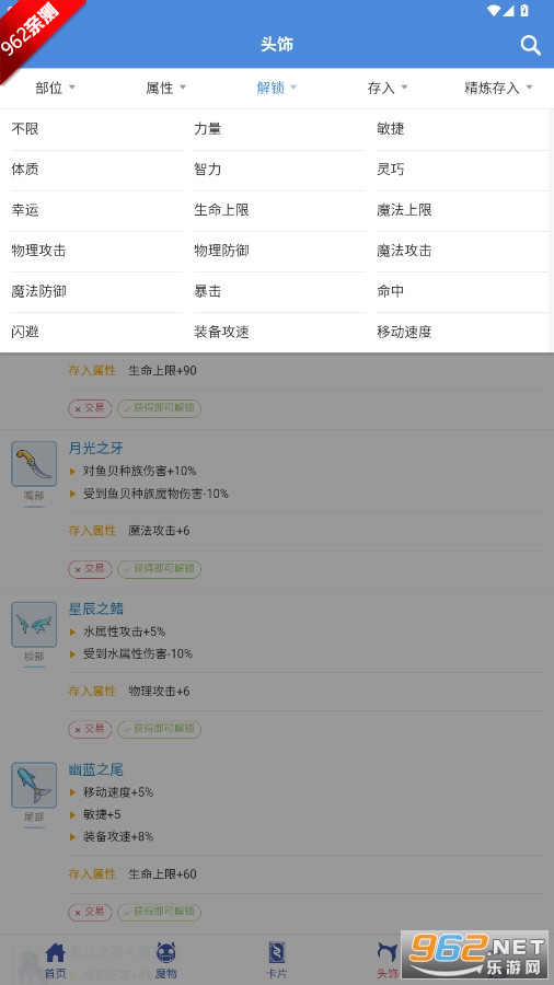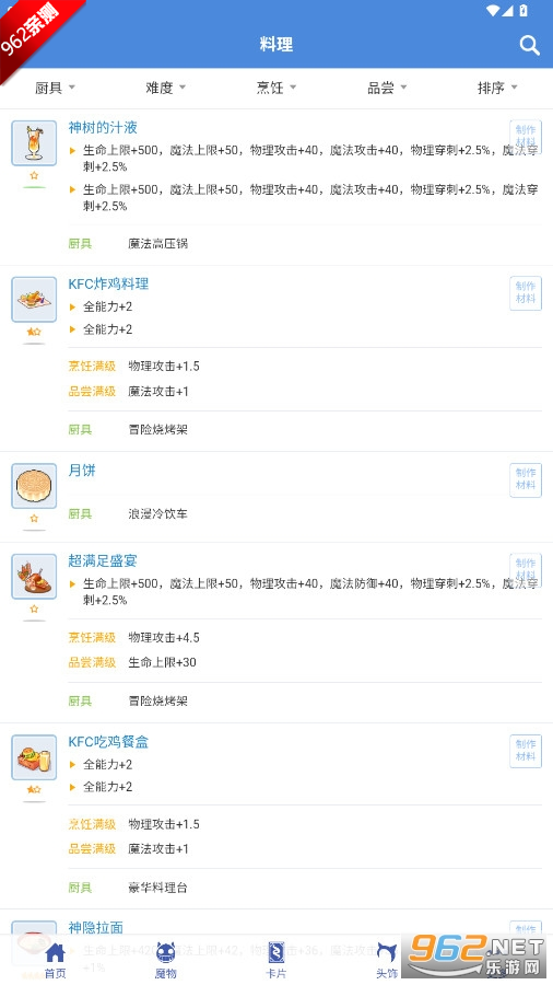 全图鉴数据系统:收录魔物、卡片、头饰、装备等完整图鉴,属性、掉落、制作方式一目了然