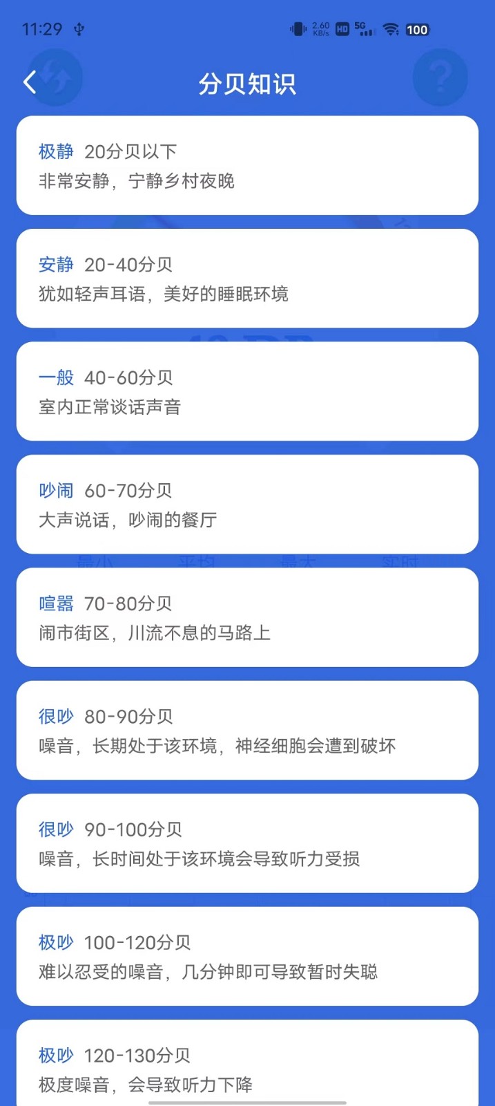 1、实时噪音监测:通过手机麦克风实时监测周围噪音,展示当前噪音水平并记录历史数据;
