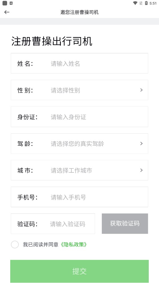 4、提交专车司机认证申请,需按要求上传驾驶证与车辆照片等资料等待平台审核。