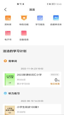 2、学习资源:上线1~9年级同步单词,口语听力、古诗文以及其他知识点书籍;