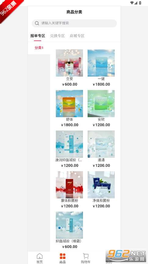 3、由于APP端是新上线安卓版本的的,商品分类目录自然没有那么的全面,只有报单赚取有各类商品的的分类,其他专区暂时没有,需要等待后续更新后正式上线。