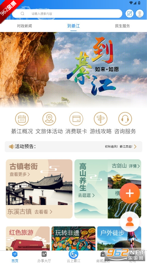 2、首页:时政新闻、綦江本地民生等资讯一览无遗,更有超多活动资讯在此发布,游綦江就从下载安装到綦江APP开始。
