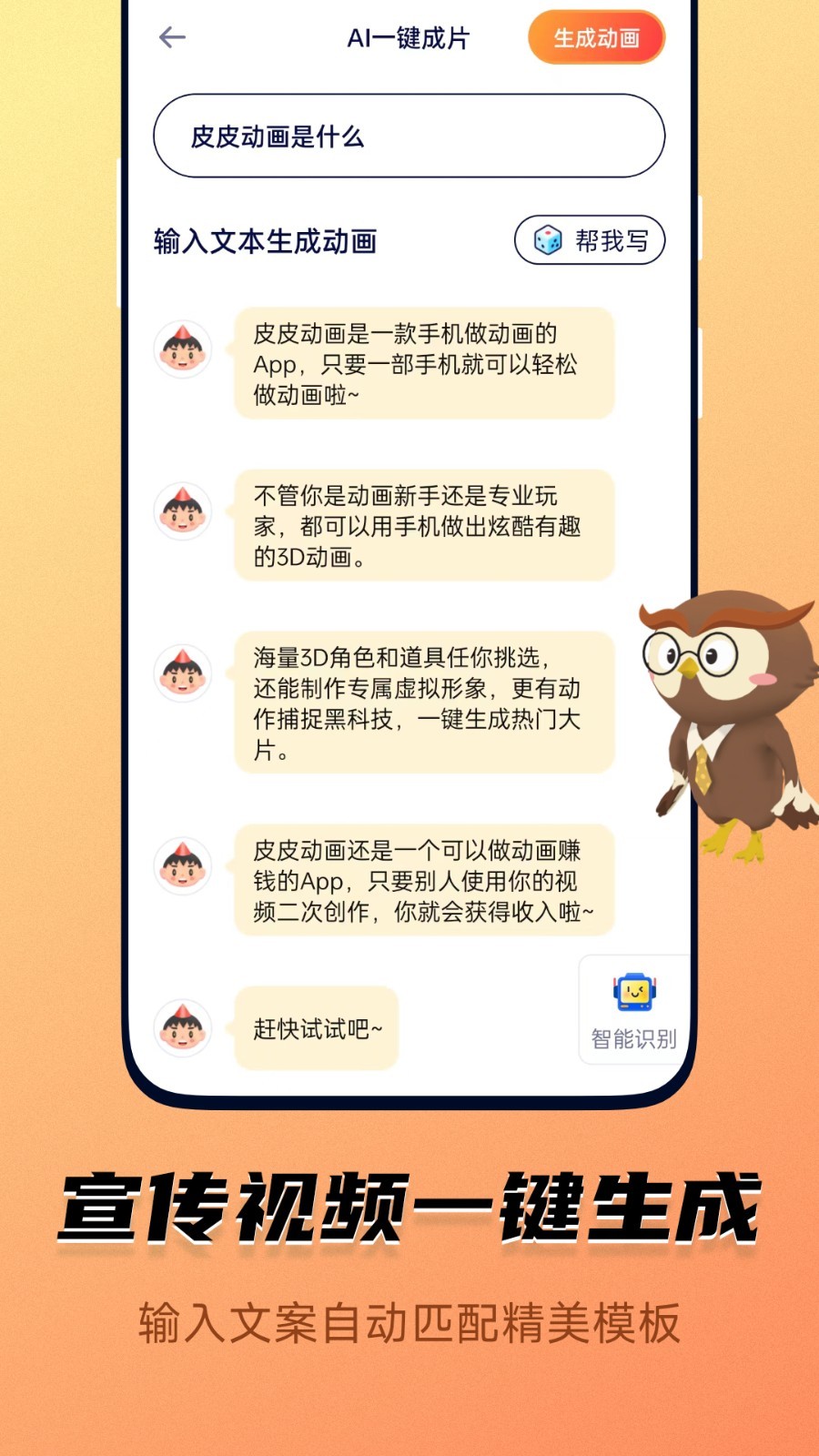 2、智能语音识别和动画匹配,让你可以一键生成动画视频,十分的简单快捷。