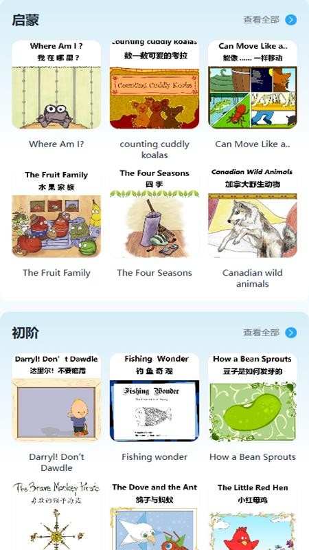 3、应用内提供大量高清英语绘本有声读物,用户能够通过纯粹的听觉渠道来吸收知识并模仿地道发音与语调。
