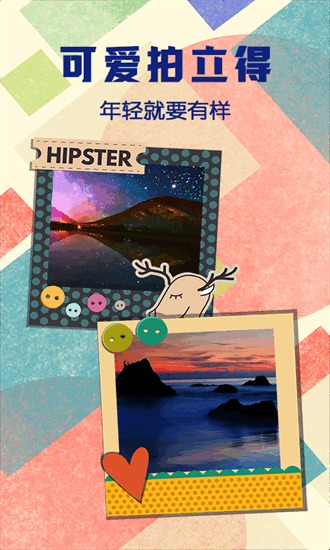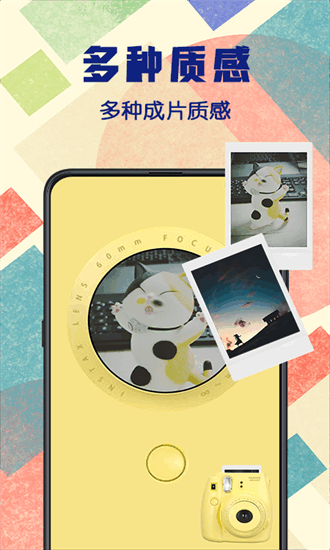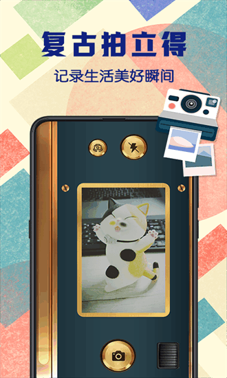 拍立得app为用户带来最用心的使用体验,从相机的外观开始。复古的相机外框、金属质感的取景框和按钮,模拟拍立得出照片的方式、日期时间戳。其注重滤镜的质感,从色彩色调,饱和度、对比度、曝光度以及颗粒度上,都贴合复古相机的成像质感,带给你胶卷般的拍照体验。