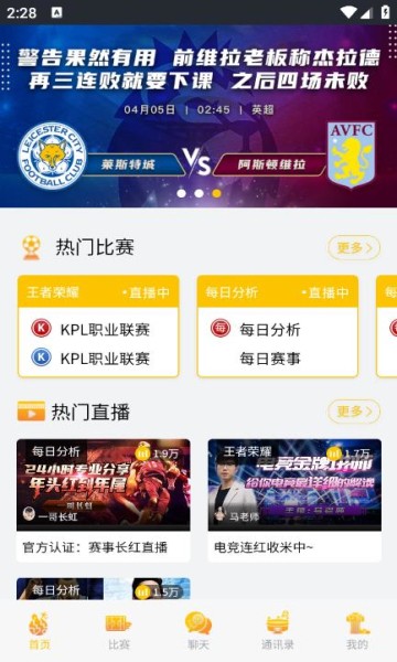 1、实时推送你关注的比赛进展