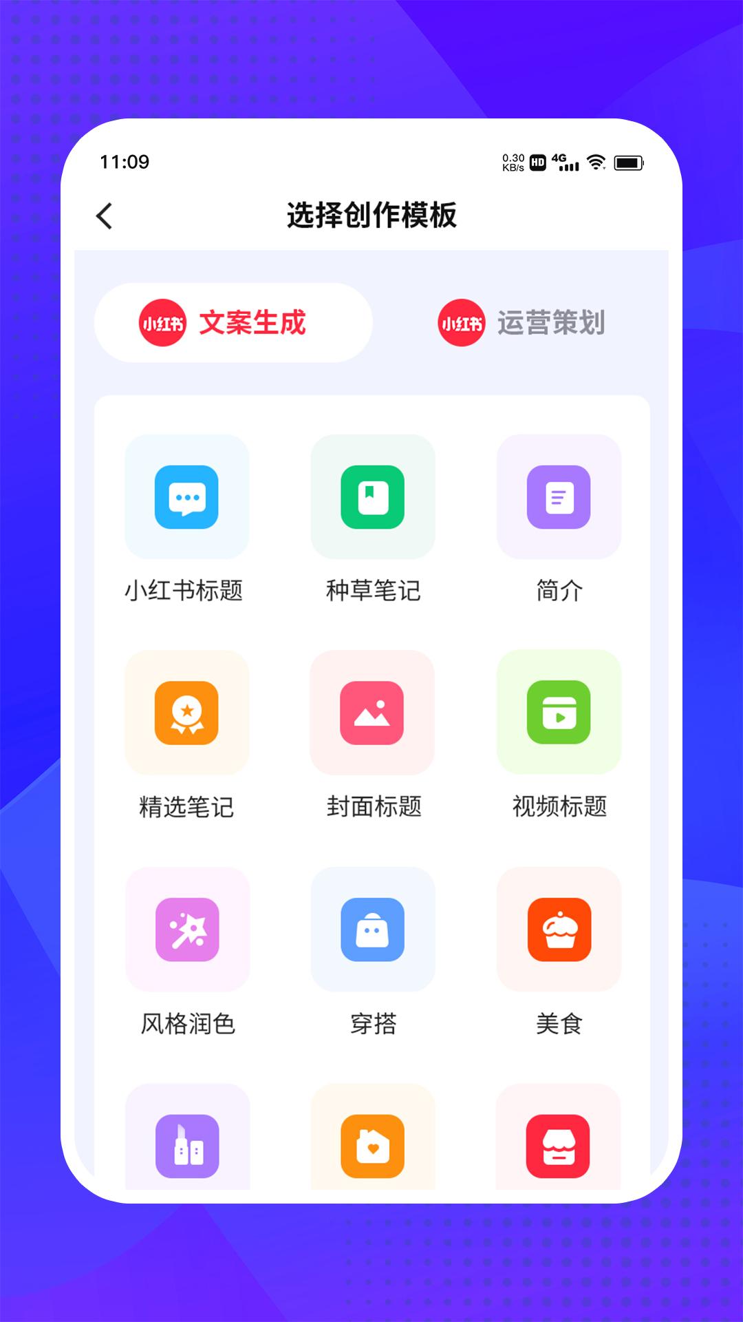 1、简洁易用的界面设计,使用户能够快速上手,可以轻松选择模板、定制关键词并生成文案,提高工作效率;
