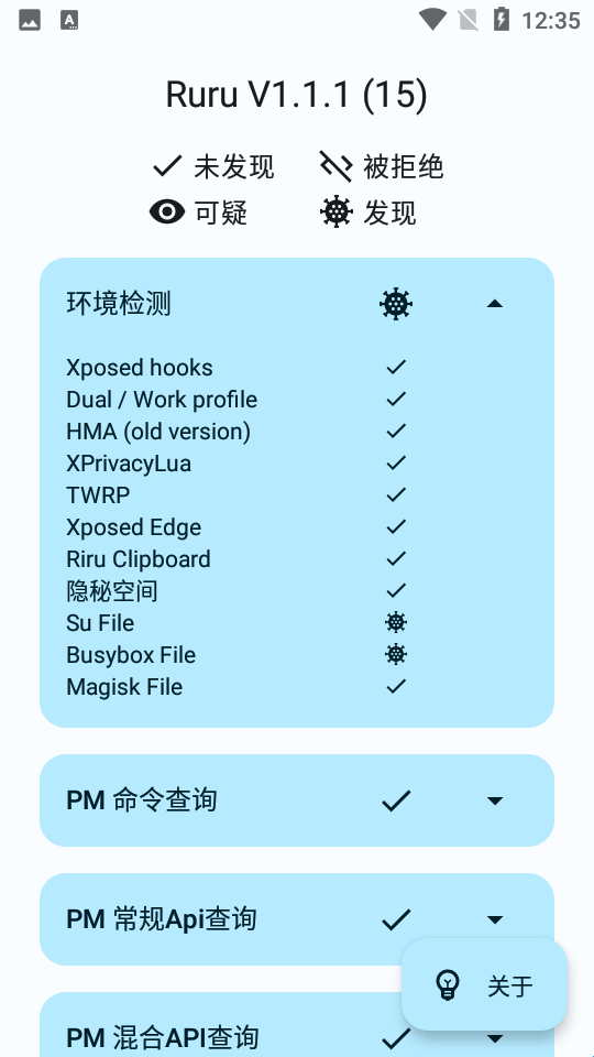 Ruru环境检测是一款非常好用的手机环境监测工具,可以一键快速检测手机系统环境的状态和相关内容,并根据实际数据显示来更好的调整相关参数,软件内置超多实用的功能木块,可以针对手机中所有应用的运行状况进行实时监控,操作简单方便,而且还可以支持多种命令查询和模块的使用,无需root权限也可以轻松运行,感兴趣的小伙伴们快来下载吧!