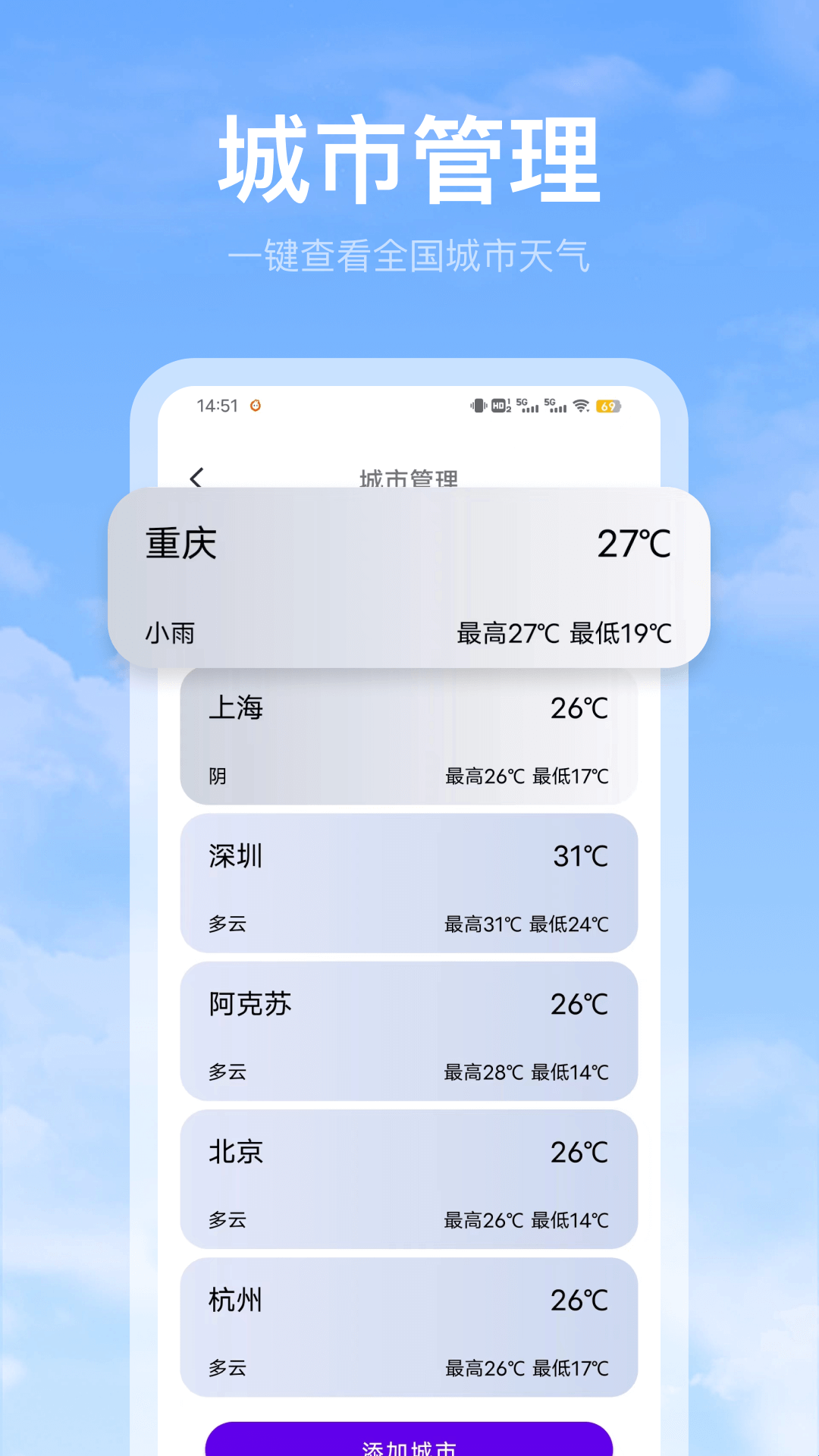 3、大家查询最新的天气预报必备的神器,一键操作。