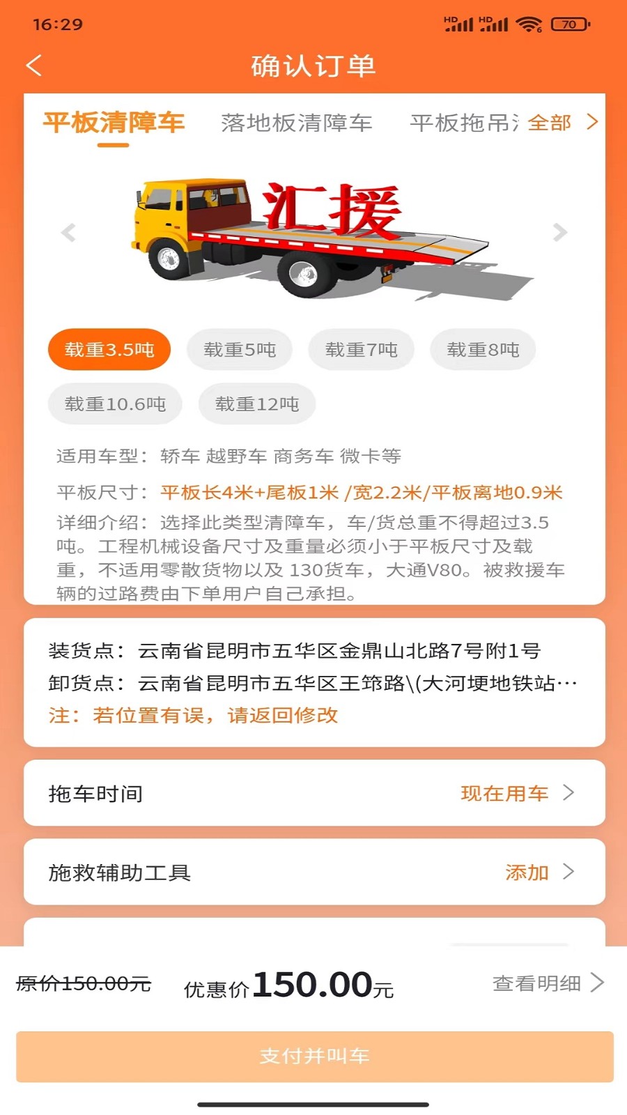3、支持用户在线自行输入起点和终点,方便能及时得到服务;汇援拖车救援app让拖车救援更简单方便。
