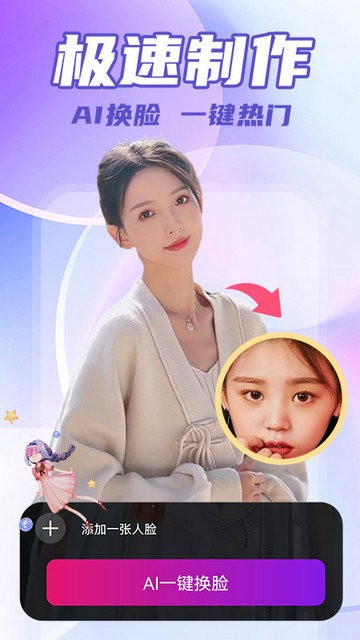 这是一款非常有趣的视频二创软件,使用这款软件你可以想怎么换脸恶搞都没问题,直接化身成为影视剧中的人物,自由的发挥你的剪辑技术,还能把照片换脸,各色各样的潮流模板,一键帮你制造,悄然换脸让你的照片如虎添翼。
