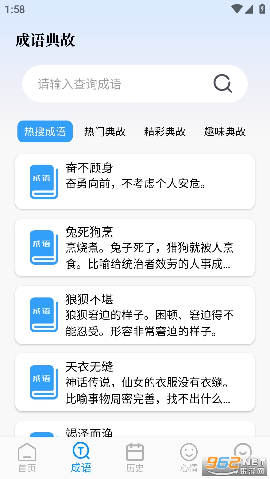 成语典故:支持搜索,了解每个成语的典故来源;