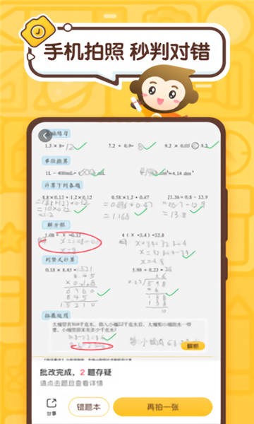 3、拍照检查口算作业,1秒完成批改,错题一目了然。