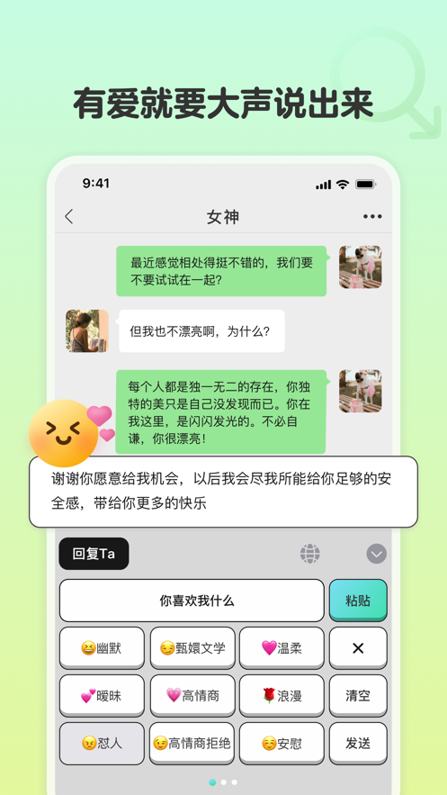 该软件还拥有强大的分析模式,会根据每个用户的性格,推荐适合话术,让用户聊天非常愉快,并且还有手把手指导功能,直接参与模拟体验就可以了解到,看看自己能否毫无破绽的应对。