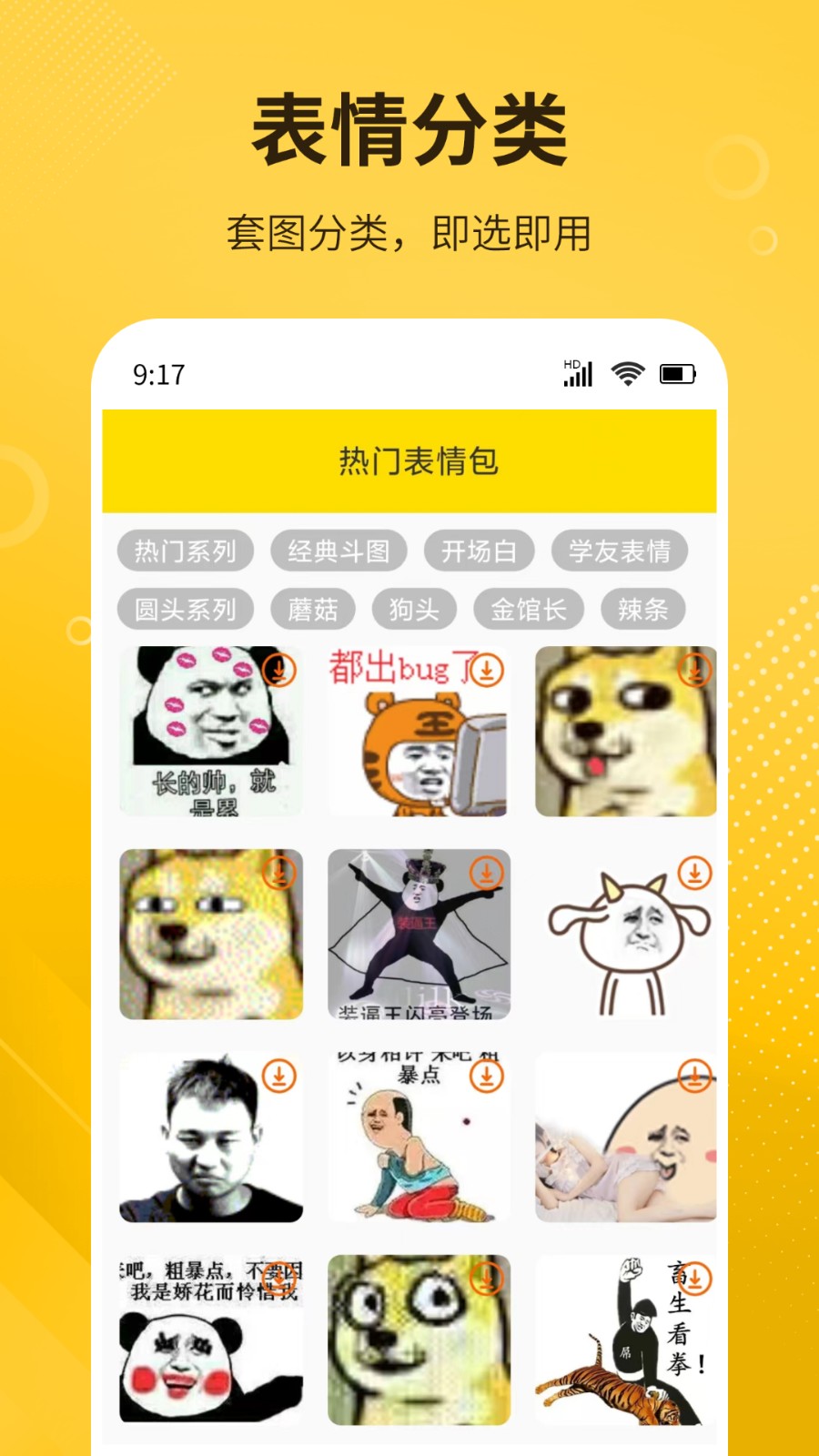 1、轻量级表情包模板,为你选出最常用的包情包,还可以添加自己的图片;