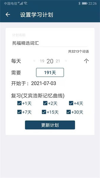 1、制定科学的单词背诵计划,根据考试时间为用户合理的安排单词背诵数量!