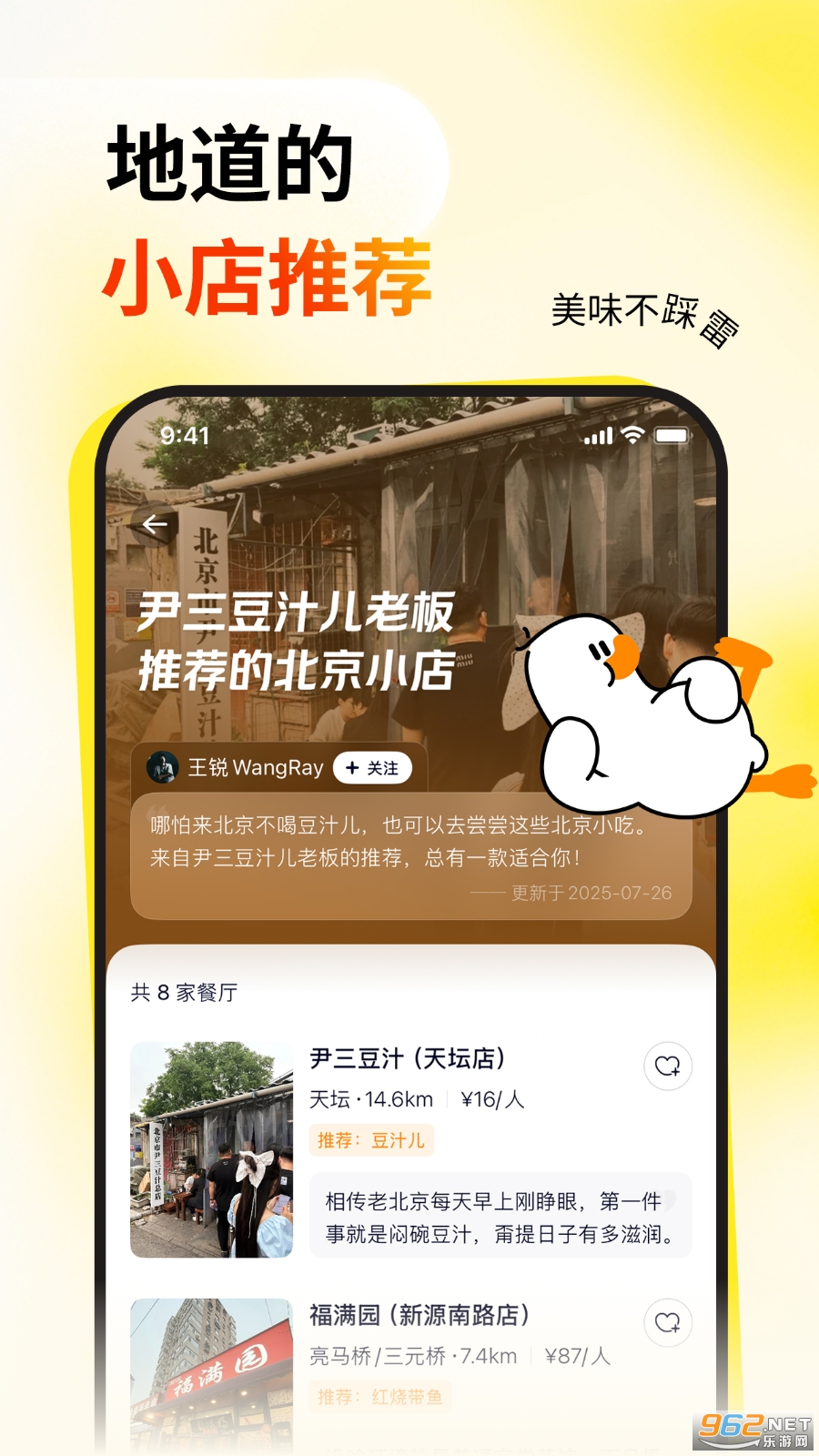 《鸭觅》是一款以专业美食推荐官为核心的美食探索平台,汇聚“吃得多、吃得广、有本职工作”的资深吃货,通过三勺专程吃、两勺绕路吃、一勺顺路吃三级严选本地前1%餐厅,打造全城美食指南。