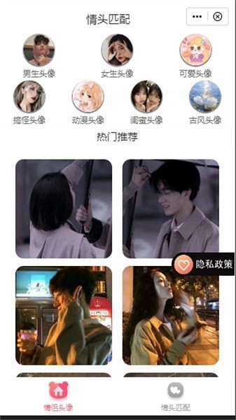 2、情侣头像配对软件,内置了丰富的情侣头像资源。