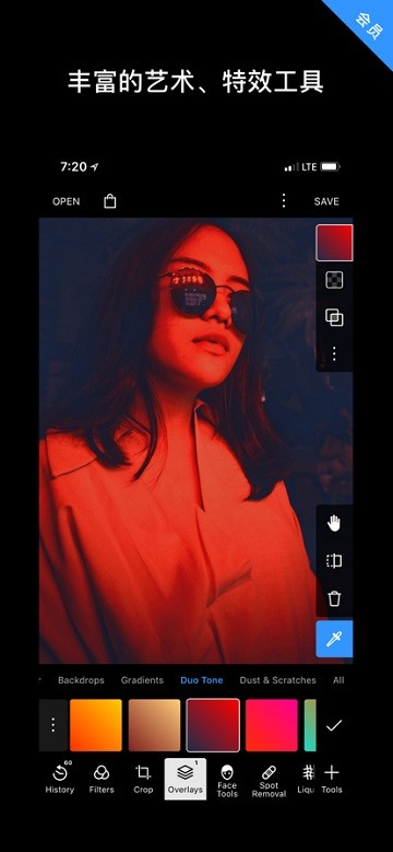 创建和分享你的自定义滤镜,上百个免费滤镜,精心设计的专业滤镜,在不同设备间同步你的滤镜。