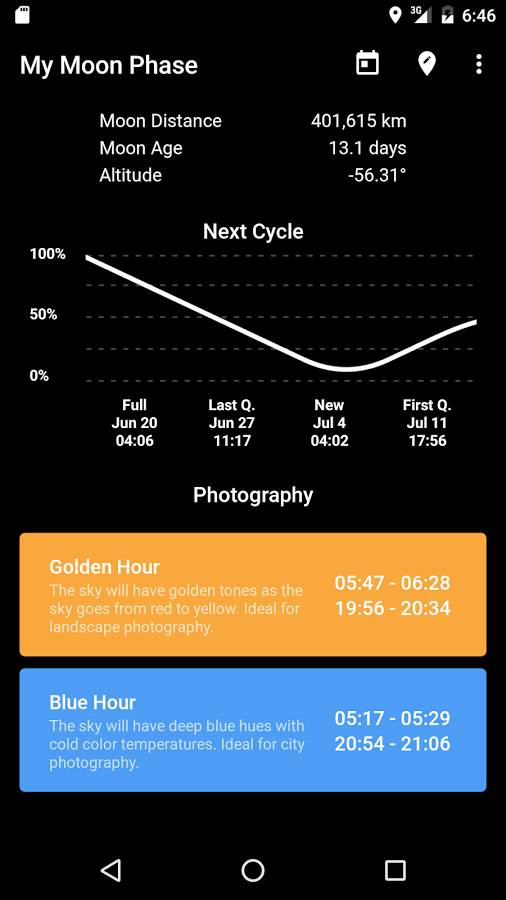 3.直接在主界面查看即将到来的月相 - 你将立即知道下一轮满月、新月、上弦月以及下弦月的日期。