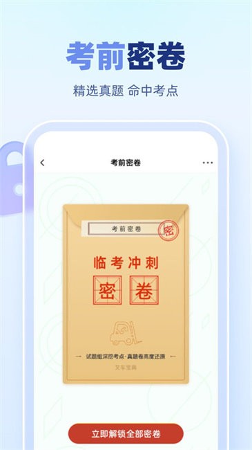 叉车考试题库宝典最新版一款学习叉车考试的软件,软件有着各种题库,解析,练习等内容,学习非常的方便,各种实时题库,在线练题,仿真模拟等功能,感兴趣的话就快来下载使用吧。