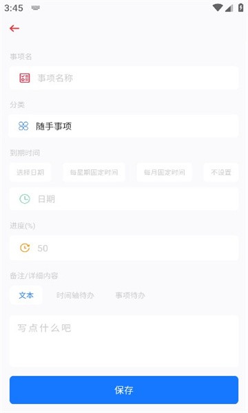 提供每星期、每月、固定日期,并可根据时间轴、事项、文本来提供辅助功能。
