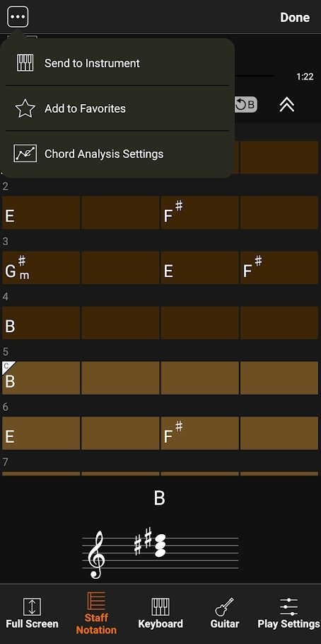 Chord Tracker扒谱软件一款非常专业的扒谱工具,通过对手机中的音乐歌曲进行解析,实现音乐的谱段及合音,有助于音乐爱好者、学习者及专业人员学习歌曲、练习弹奏或作曲。