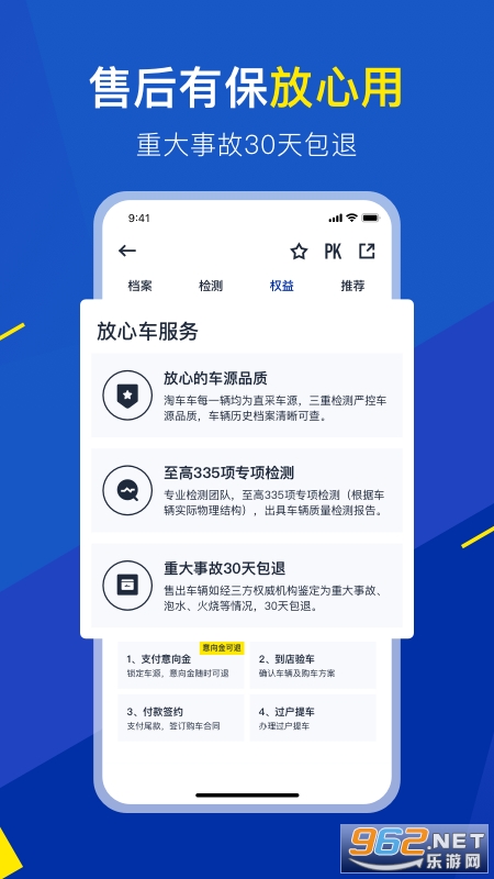 「售后有保障」专业检测,放心用车,重大事故30天内包退;