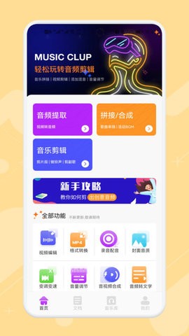 2、视频里面的音频字幕都可以直接来一键提取,还有各种素材可以使用,快速制作你的音乐作品