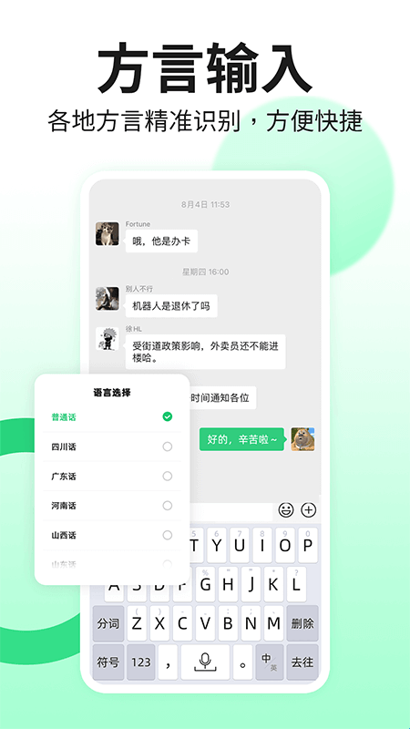 吉祥语音输入法是一款专为手机用户提供多样式输入法的软件,输入法键盘皮肤切换、选择常用语、打字播报、语音点读、拍照朗读、方言输入件等功能。操作简单,社交聊天输入信息更便捷。