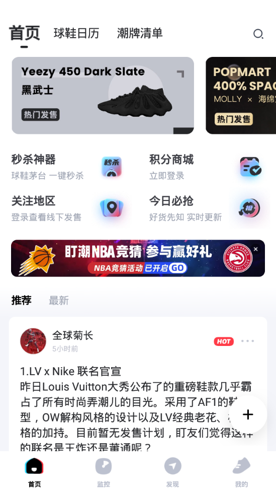 2、浏览各个品牌球鞋即将发售的日期