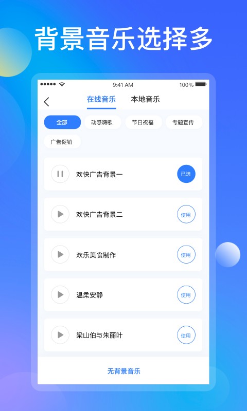 1、这款配音应用提供全面免费的配音服务,用户可以不花一分钱将所有的配音作品导出至U盘,并且支持循环播放功能,方便在各种场合使用。