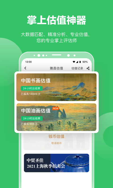 3、功能强大便捷:提供方便快速地查看拍卖预展信息、多维度搜索和数据筛选。还包含实用的小工具如天干地支换算、货币换算、平尺换算等,功能强大且易用。