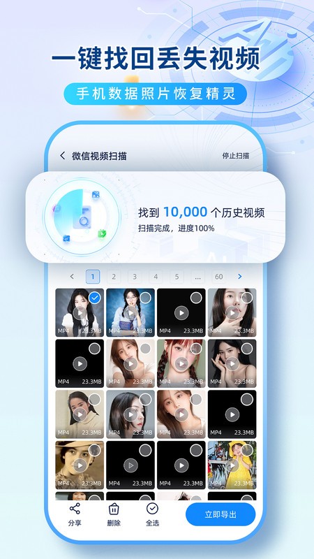 3、一键找回丢失视频,手机数据照片恢复精灵。