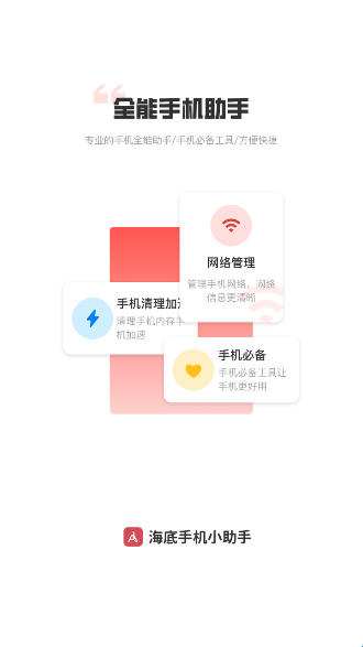 海底手机小助手app官方版帮助用户轻松清理手机内存垃圾、释放存储空间,提升手机运行速度和性能,集成了智能清理功能和一系列优化工具,为用户打造清洁、高效的手机使用环境。