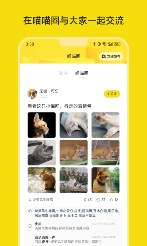 1、集分享、互动、猫咪领养和短视频为一体的社交软件,功能非常齐全;